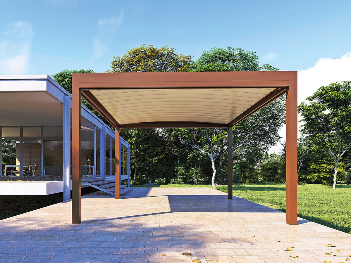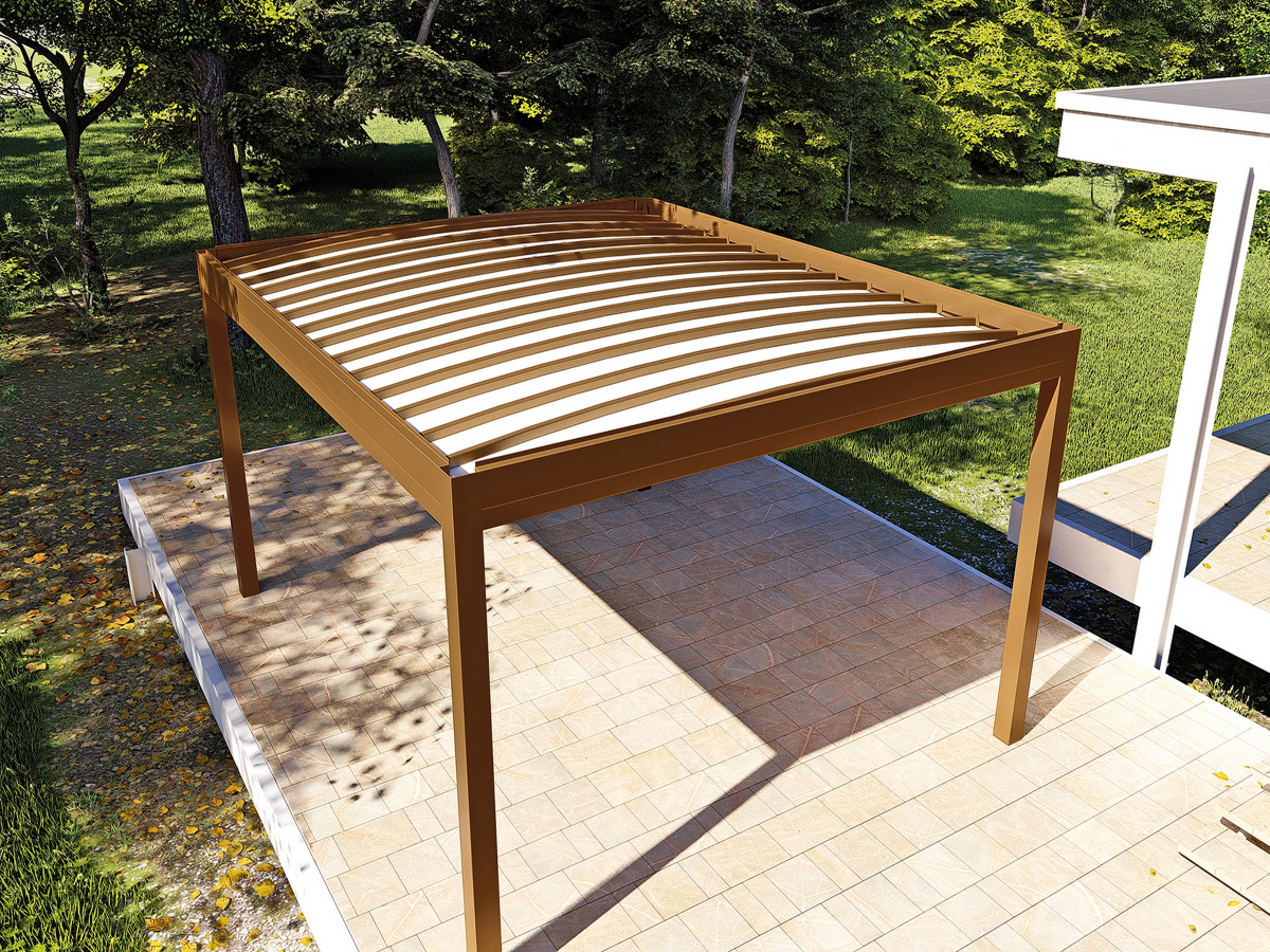 La pergola modello QBOX K è un'ottima soluzione per realizzare coperture fisse autoportanti o addossate.